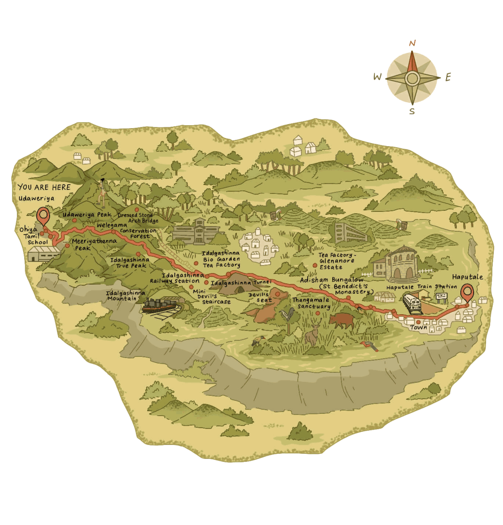 Beyond the village, the tea trail narrows into a walking path, historically used by locals traveling between Udaweriya, Idalgashinna, and Haputale. However, the trail’s maintenance has declined since the village was abandoned, so watch your footing.