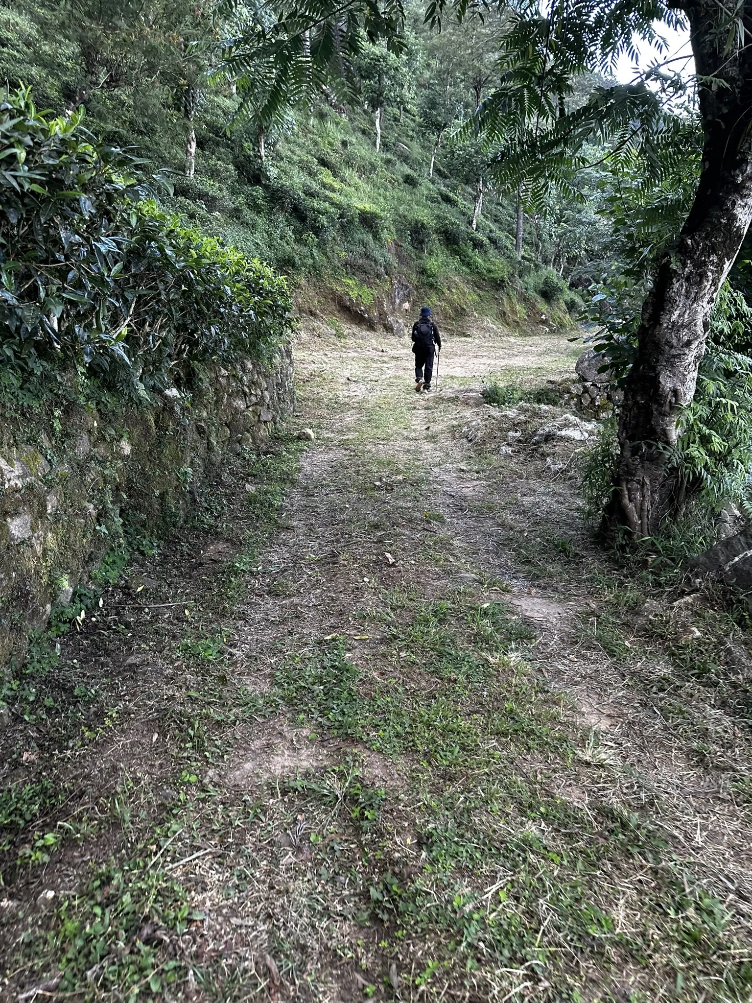 The journey begins at the old, derelict Udaweriya tea factory. The first 1.7 km takes you through the valley itself, culminating at a tea trail crossroads near an old house, your highest point of the day at 1,948 meters. This tranquil spot, seemingly frozen in time, offers a glimpse into rural life, with curious villagers and a family of goats adding to the charm.